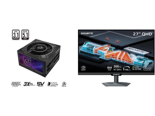 ASRock Phantom Gaming PG-750G 750W 80 PLUS GOLD & Cybenetics PLATINUM Full Modular Power Supply, ATX3.1 & PCIe5.1 Ready with Dual Color 12V-2x6 Cable, 10 Years Warranty GIGABYTE 27" QHD 2K 1440P 300Hz/OC 320Hz IPS with AMD FreeSync Premium