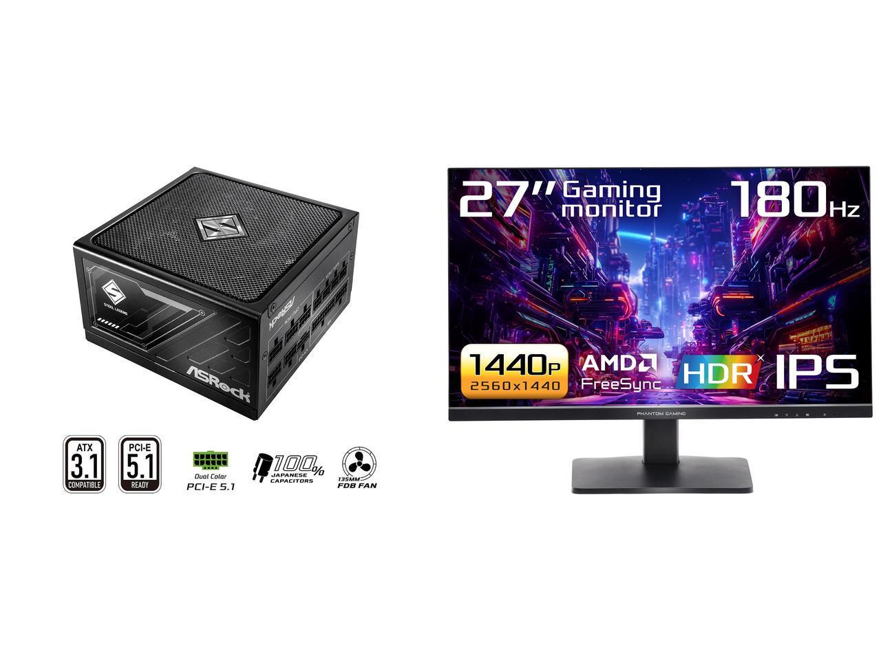 ASRock SL-850G 850W Power Supply ASRock Phantom Gaming 27" QHD 2K 1440P 180Hz IPS with AMD FreeSync (AMD Adaptive Sync) HDR400 Gaming Computer Monitor PG27QFT1B