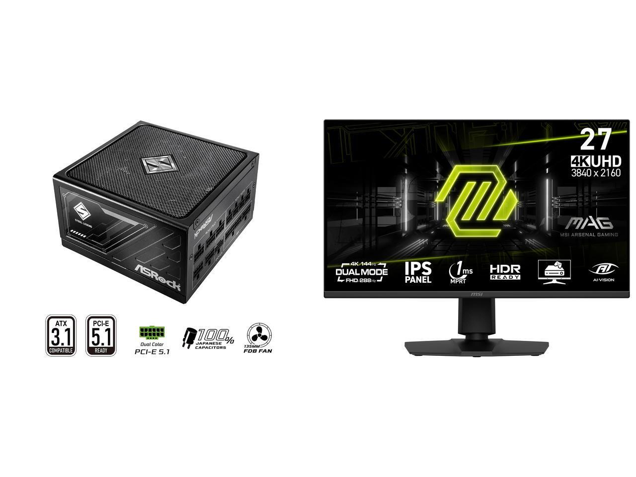 ASRock SL-1000G 1000W Power Supply MSI 27" Dual Mode UHD 4K 144Hz Full HD 288Hz IPS with Adaptive-Sync 1ms HDR400 Ai Crosshair Gaming Computer Monitor with Height Adjustable, Swivel, Pivot & Tilt Stand MAG 275UPD E14