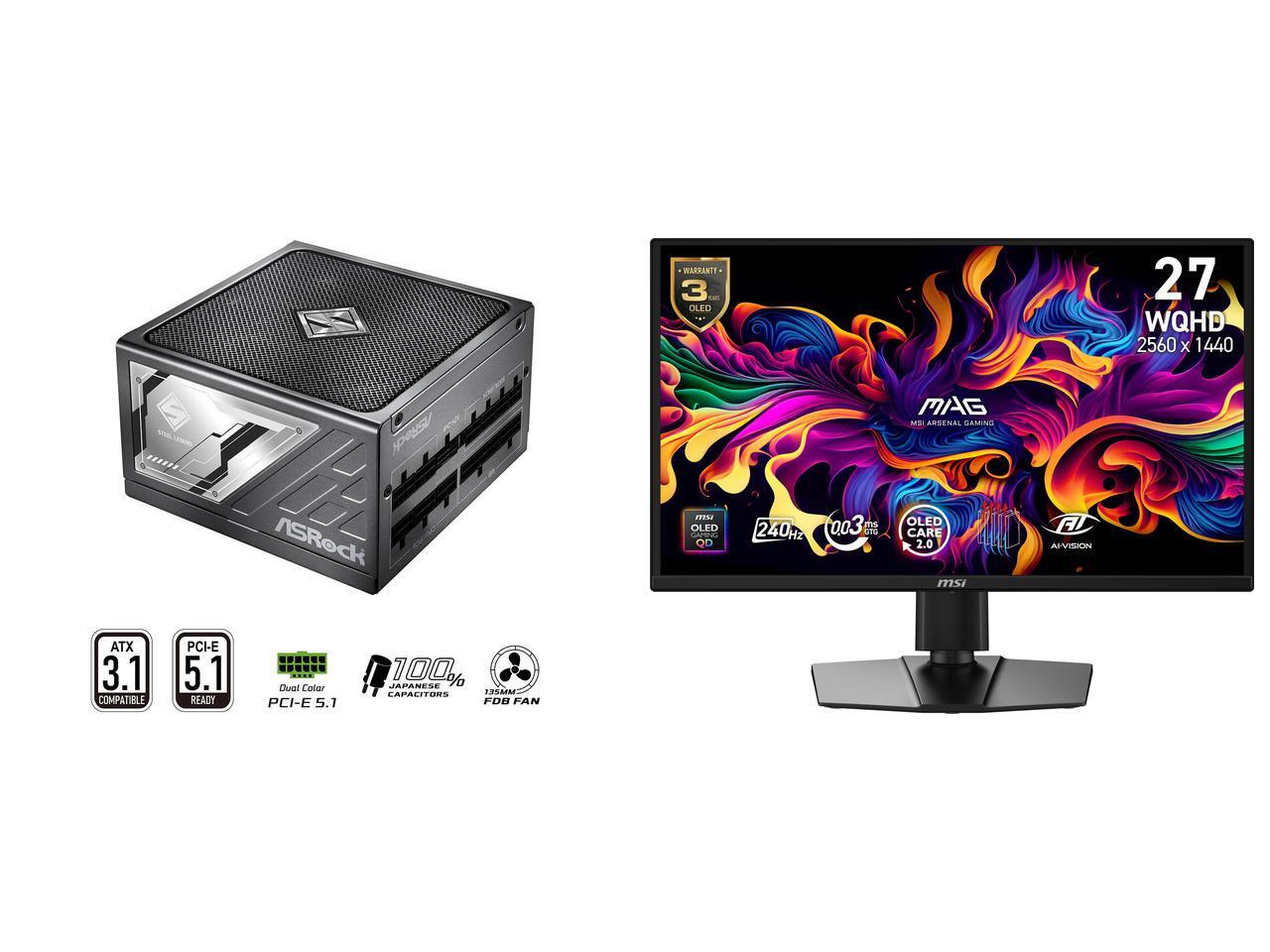 ASRock SL-850P 850W Power Supply MSI 27" WQHD 2K 1440P 240Hz with Adaptive Sync 0.03ms OLED Gaming Computer Monitor with Height Adjustable, Pivot, Swivel & Tilt stand MAG 272QP QD-OLED X24