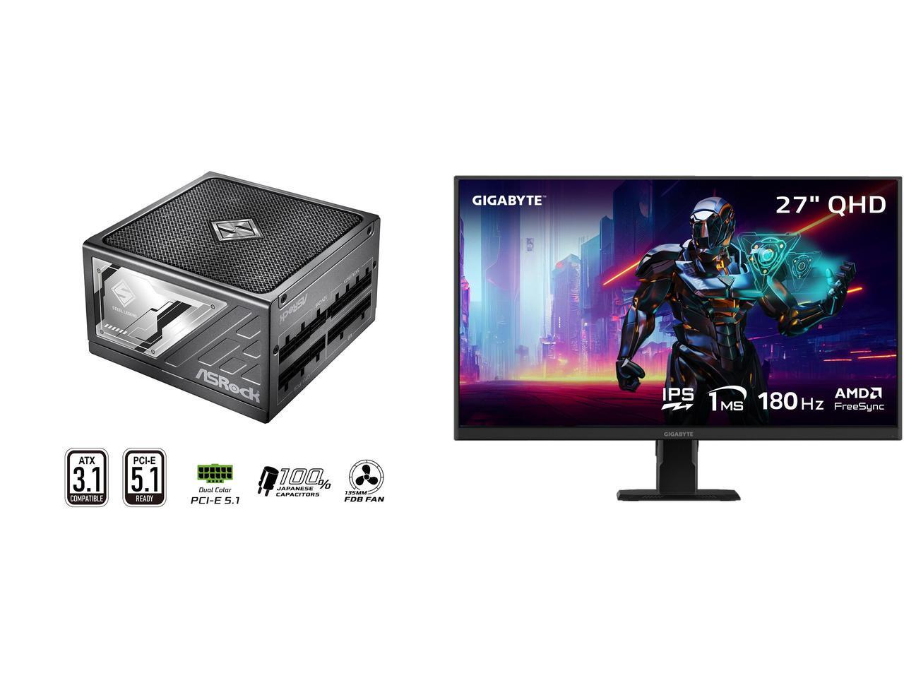 ASRock SL-1000P 1000W Power Supply GIGABYTE 27" QHD 2K 1440P 180hz IPS with AMD FreeSync Premium 1ms HDR ready Gaming Computer Monitor GS27QA