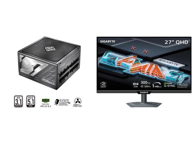 ASRock SL-1000P 1000W Power Supply GIGABYTE 27" QHD 2K 1440P 300Hz/OC 320Hz IPS with AMD FreeSync Premium Pro & G-SYNC Compatible 1ms USB-C KVM Gaming Computer Monitor with Height Adjustable, Pivot, Swivel & Tilt Stand M27Q3