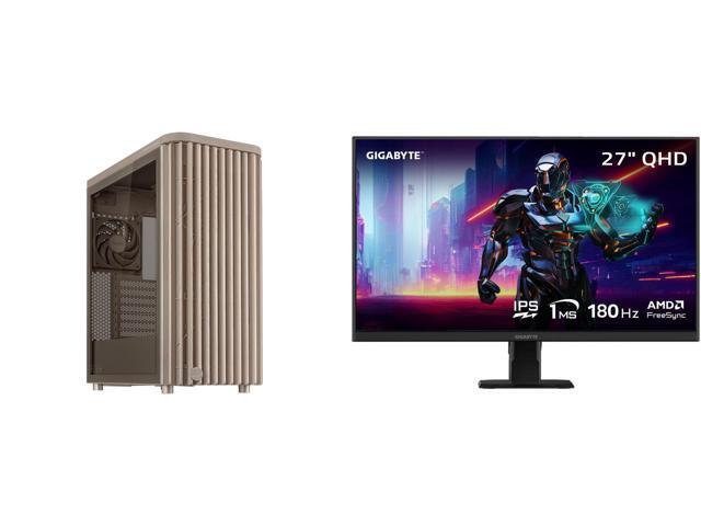ASUS ProArt PA401 Wood Edition Beige ATX case features a tempered glass panel, supports GPUs up to 315mm, 240mm radiator, 160x32mm fans, button lock, and detachable PSU bracket GIGABYTE 27" QHD 2K 1440P 180hz IPS with AMD FreeSync Premium 1
