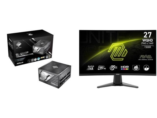 ASRock SL-1200P 1200W Power Supply MSI 27" QHD 2K 1440P 180Hz with AMD FreeSync Sync 0.5ms HDR Ready support VRR Ai Vision Less Blue Light Anti-Flicker Curved Gaming Computer Monitor MAG 27CQ6F
