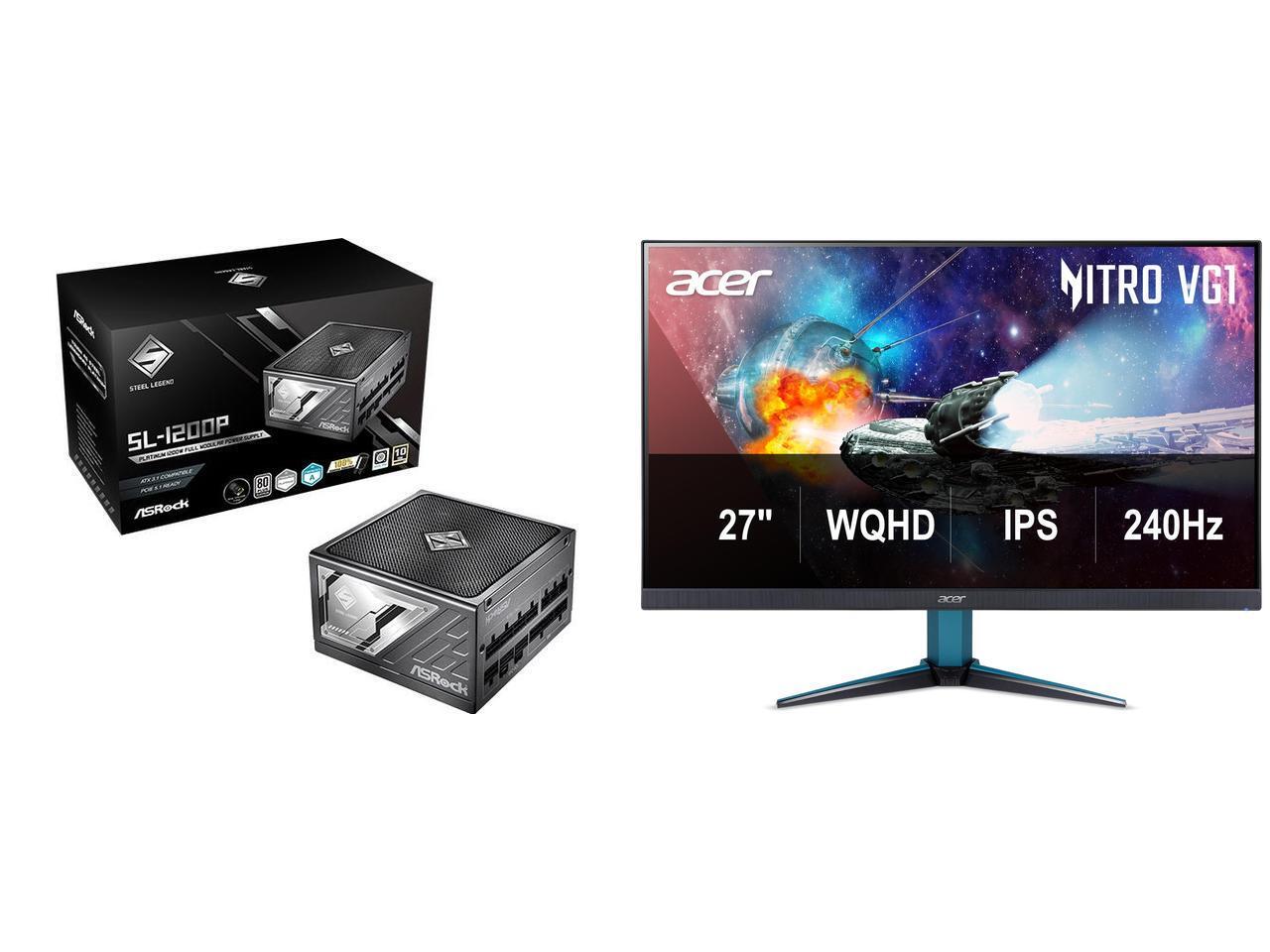 ASRock SL-1200P 1200W Power Supply Acer Nitro 27" WQHD 2K 1440P 240HZ IPS 0.5ms with AMD FreeSync Premium HDR400 Gaming Computer Monitor with Speakers VG272U W2BMIIPX