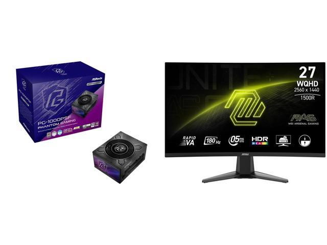 ASRock PG-1000PSF 1000W Power Supply MSI 27" QHD 2K 1440P 180Hz with AMD FreeSync Sync 0.5ms HDR Ready support VRR Ai Vision Less Blue Light Anti-Flicker Curved Gaming Computer Monitor MAG 27CQ6F