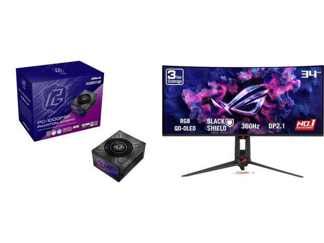 ASRock PG-1000PSF 1000W Power Supply ASUS ROG SWIFT 34 inch QHD 2K 1440P 360Hz AMD FreeSync Premium Pro & G-SYNC Compatible HDR500 AUTO KVM USB-C Curved OLED Gaming Computer Monitor with Height Adjustable, Swivel & Tilt Stand PG34WCDN