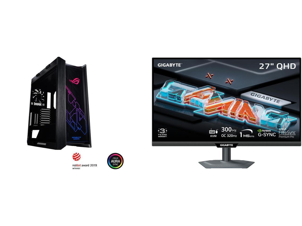 ASUS ROG Strix Helios GX601 RGB Mid-Tower Computer Case for up to EATX Motherboards with USB 3.1 Front Panel, Smoked Tempered Glass, Brushed Aluminum and Steel Construction, and Four Case Fans GIGABYTE 27" QHD 2K 1440P 300Hz/OC 320Hz IPS wi