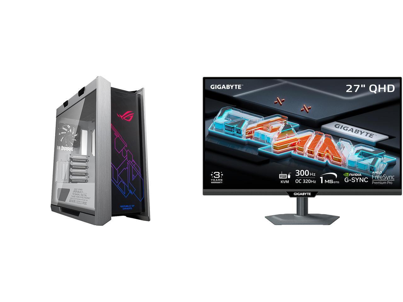 ASUS ROG Strix Helios GX601 White Edition RGB Mid-Tower Computer Case for ATX/ EATX Motherboards with Tempered Glass, Aluminum Frame, GPU Braces, 420mm Radiator Support and Aura Sync GIGABYTE 27" QHD 2K 1440P 300Hz/OC 320Hz IPS with AMD Fre
