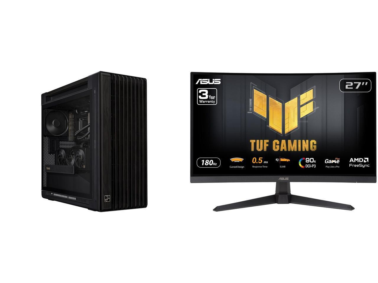 ASUS ProArt PA602 Wood Edition - Tempered Glass Panel E-ATX case, 420 mm radiator support, 1x 140 mm + 2x 200 mm pre-installed fans, power lock latch, tool-less PCIe mounting, USB 20Gbps support ASUS TUF Gaming 27" QHD 2K 1440P 180Hz with A