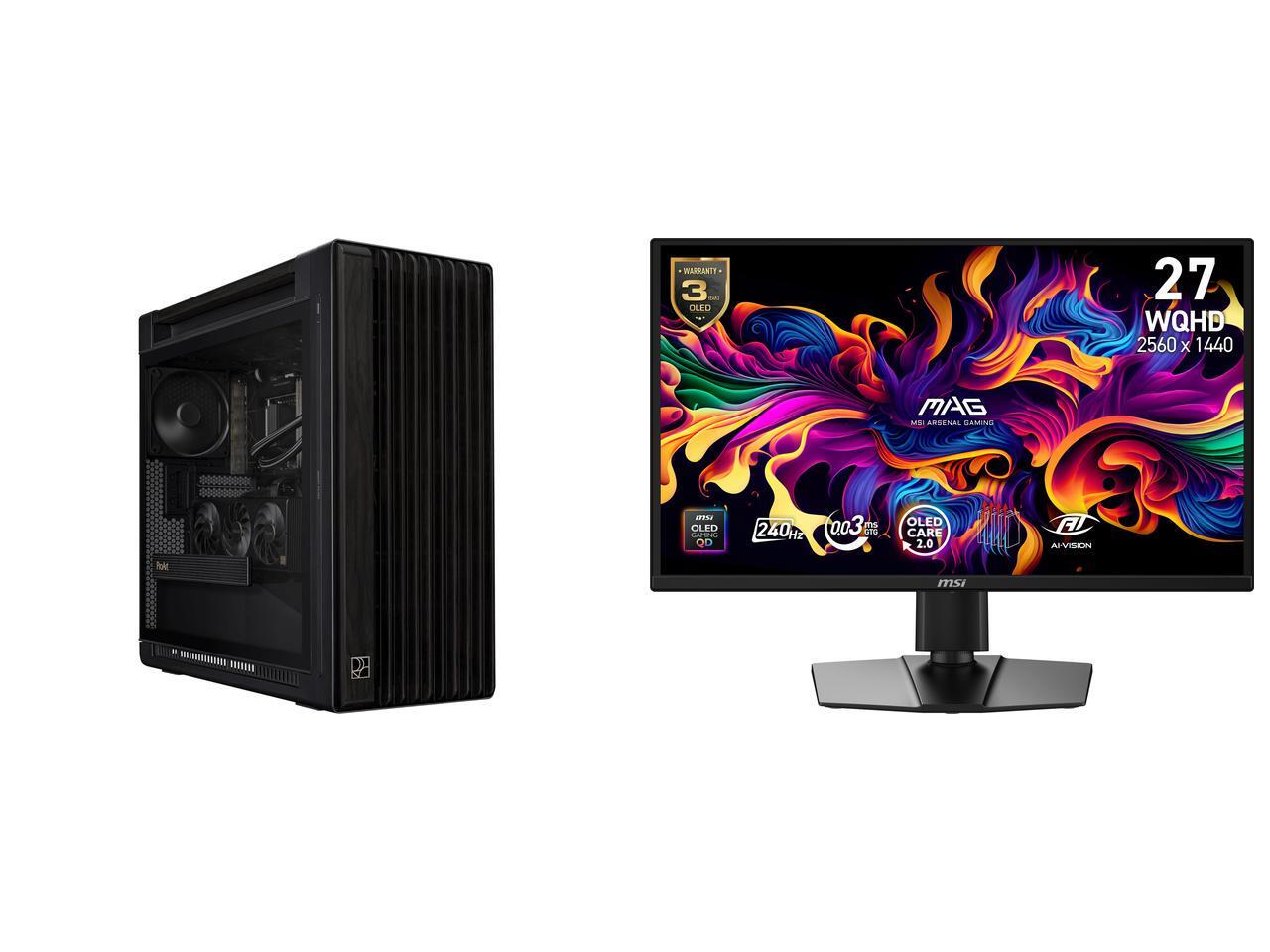 ASUS ProArt PA602 Wood Edition - Tempered Glass Panel E-ATX case, 420 mm radiator support, 1x 140 mm + 2x 200 mm pre-installed fans, power lock latch, tool-less PCIe mounting, USB 20Gbps support MSI 27" WQHD 2K 1440P 240Hz with Adaptive Syn