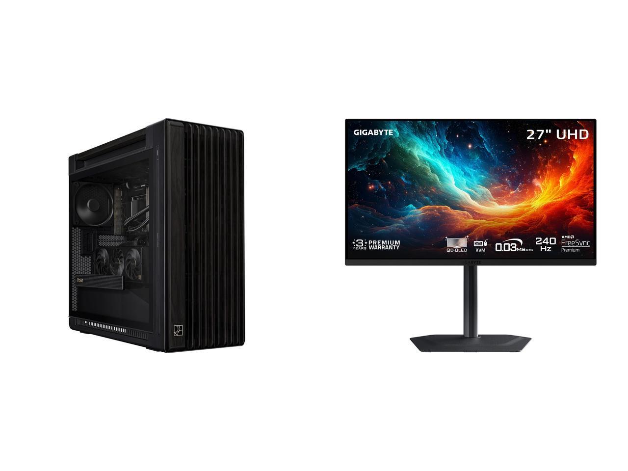 ASUS ProArt PA602 Wood Edition - Tempered Glass Panel E-ATX case, 420 mm radiator support, 1x 140 mm + 2x 200 mm pre-installed fans, power lock latch, tool-less PCIe mounting, USB 20Gbps support GIGABYTE 27" UHD 4K 240Hz with AMD FreeSync P