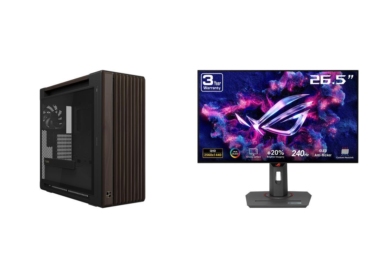 ASUS ProArt PA602 Wood Edition Modern Black E-ATX Mid-Tower Case with Tempered Glass, Supports 440mm GPUs, 420mm Radiators, Includes One 140mm and Two 200mm Pre-Installed Fans. ASUS ROG Strix 27" QHD 2K 1440P 240Hz with AMD FreeSync Premium