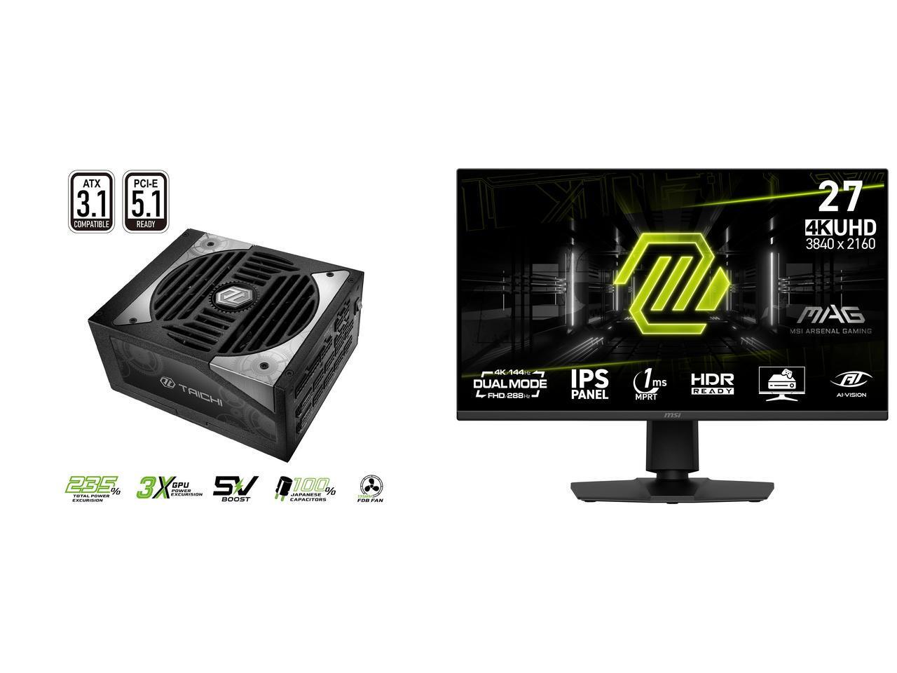 ASRock TC-1300T 1300 W Power Supply MSI 27" Dual Mode UHD 4K 144Hz Full HD 288Hz IPS with Adaptive-Sync 1ms HDR400 Ai Crosshair Gaming Computer Monitor with Height Adjustable, Swivel, Pivot & Tilt Stand MAG 275UPD E14