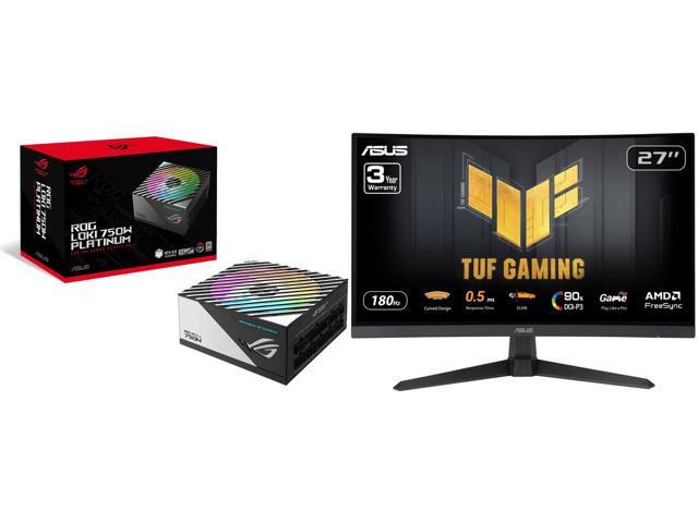 ASUS ROG Loki SFX-L 750W Platinum (Fully Modular Power Supply, 80+ Platinum, Lambda A Certified, 120mm PWM ARGB Fan, Aura Sync, ATX 3.0 Compatible, PCIe 5.0 Ready) ASUS TUF Gaming 27" QHD 2K 1440P 180Hz with AMD FreeSync, 0.5ms, 1500R, Extr