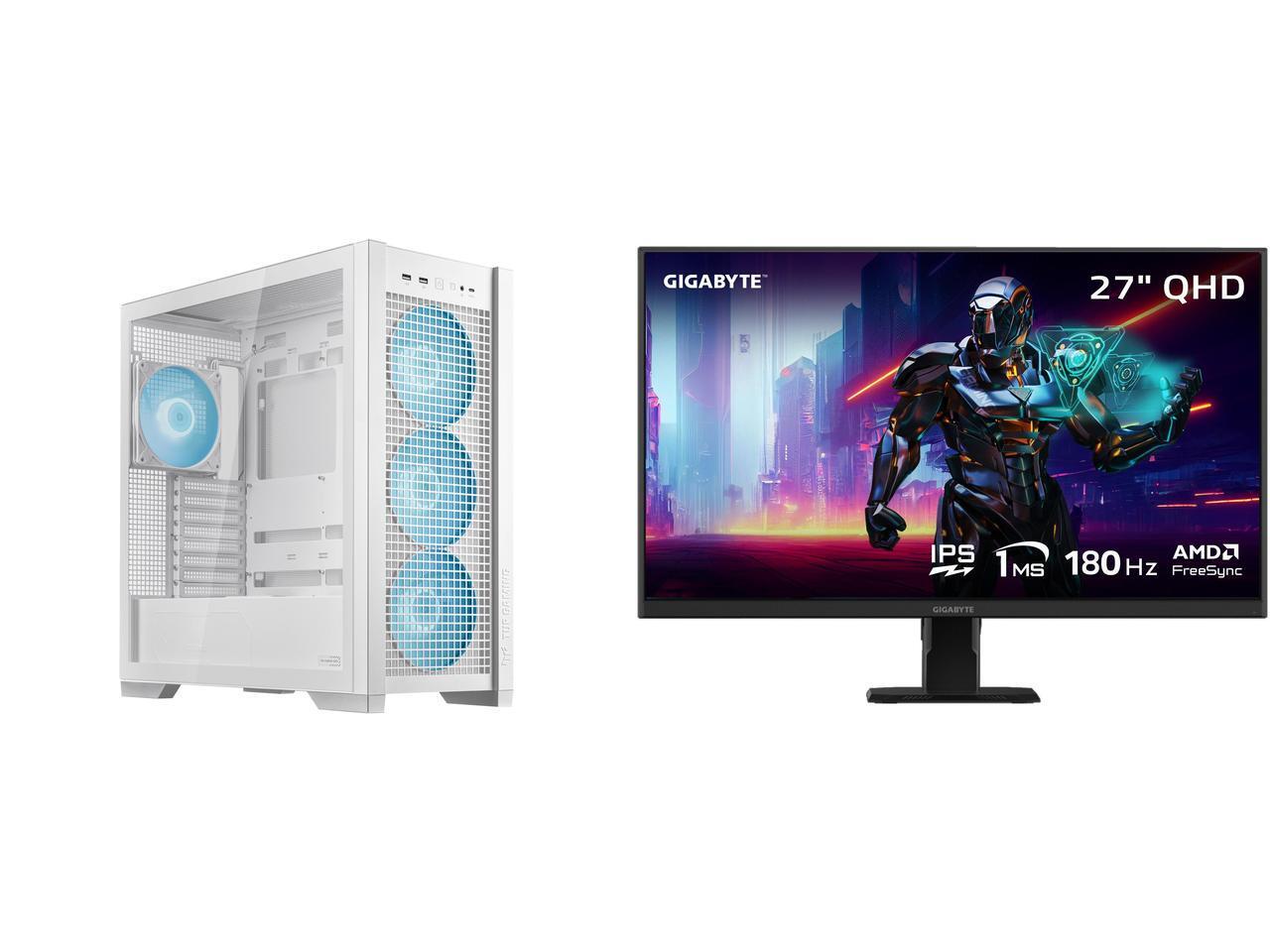 ASUS TUF Gaming GT302 ARGB White Edition ATX Mid-Tower Case Four 140 x 28 mm ARGB fans for high airflow and static pressure, interchangeable side panel, hidden-connector motherboard support GIGABYTE 27" QHD 2K 1440P 180hz IPS with AMD FreeS