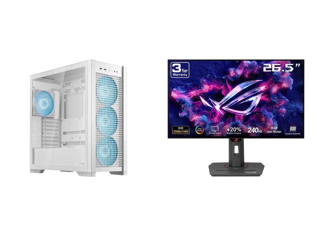 ASUS TUF Gaming GT302 ARGB White Edition ATX Mid-Tower Case Four 140 x 28 mm ARGB fans for high airflow and static pressure, interchangeable side panel, hidden-connector motherboard support ASUS ROG Strix 27" QHD 2K 1440P 240Hz with AMD Fre