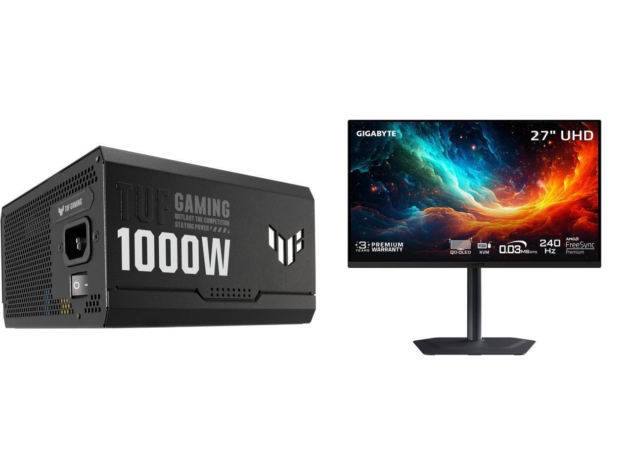 ASUS TUF Gaming 1000W Gold (1000 Watt, ATX 3.0 Compatible Fully Modular Power Supply, 80+ Gold Certified, Military-grade Components, Dual Ball Bearing, Axial-tech Fan, PCB Coating) GIGABYTE 27" UHD 4K 240Hz with AMD FreeSync Premium Pro &,
