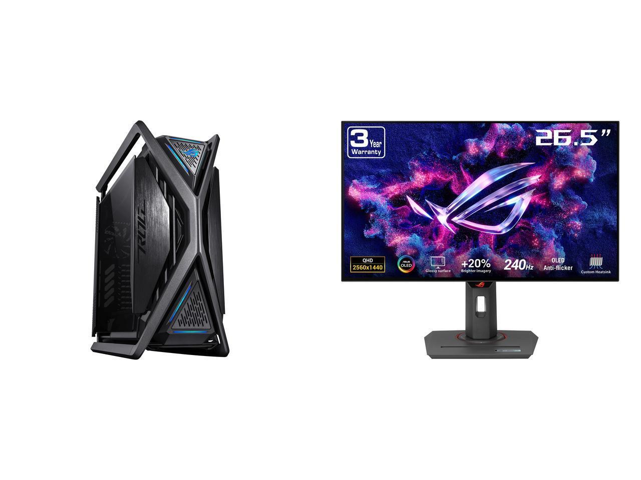ASUS ROG Hyperion GR701 EATX full-tower computer case with semi-open structure, tool-free side panels, supports up to 2 x 420mm radiators, built-in graphics card holder,2x front panel Type-C ASUS ROG Strix 27" QHD 2K 1440P 240Hz with AMD Fr