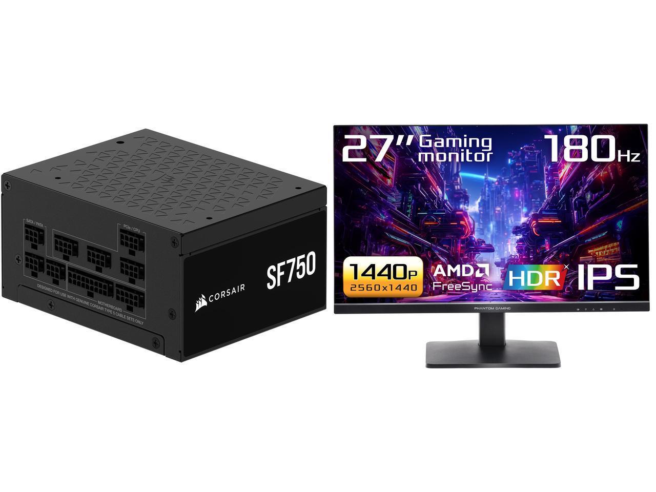 Corsair SF Series (2024) SF750, 80 PLUS Platinum, Fully Modular SFX Power Supply, CP-9020284-NA ASRock Phantom Gaming 27" QHD 2K 1440P 180Hz IPS with AMD FreeSync (AMD Adaptive Sync) HDR400 Gaming Computer Monitor PG27QFT1B
