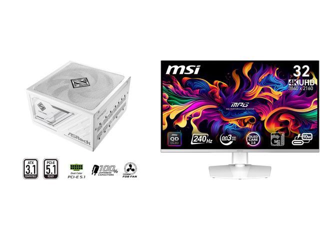 ASRock SL-1000GW Gold 1000W Full Modular Power Supply MSI 32" UHD 4K 240Hz AMD FreeSync Premium Pro & G-Sync Compatible 0.03ms HDR400 USB-C white OLED Gaming Computer Monitor with Height Adjustable, Pivot, Swivel & Tilt Stand MPG 321URXW Q