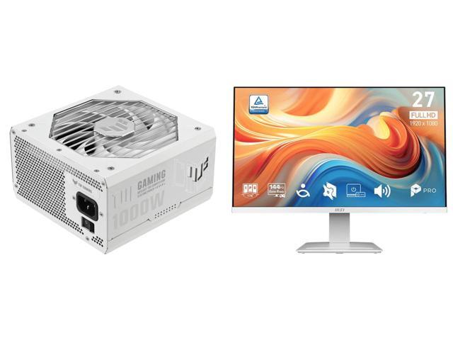 ASUS TUF Gaming 1000W 80+ Gold White Edition (1000 Watt, Fully Modular Power Supply, 80+ Gold Certified, Military-grade Components, Dual Ball Bearing, Axial-tech Fan, PCB Coating) MSI 27" Full HD 144Hz IPS white LCD Computer Monitor with Bu