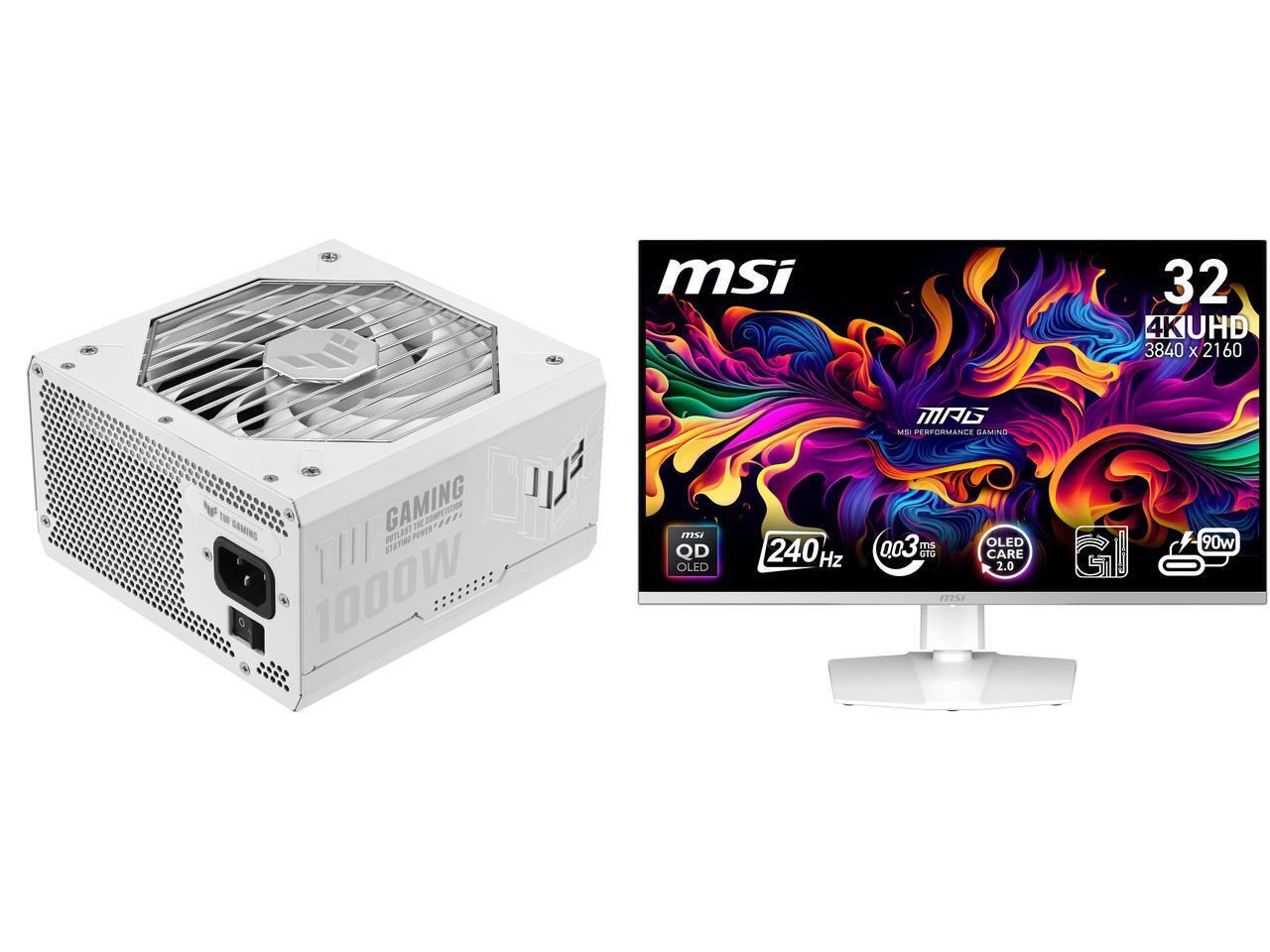 ASUS TUF Gaming 1000W 80+ Gold White Edition (1000 Watt, Fully Modular Power Supply, 80+ Gold Certified, Military-grade Components, Dual Ball Bearing, Axial-tech Fan, PCB Coating) MSI 32" UHD 4K 240Hz AMD FreeSync Premium Pro & G-Sync Comp