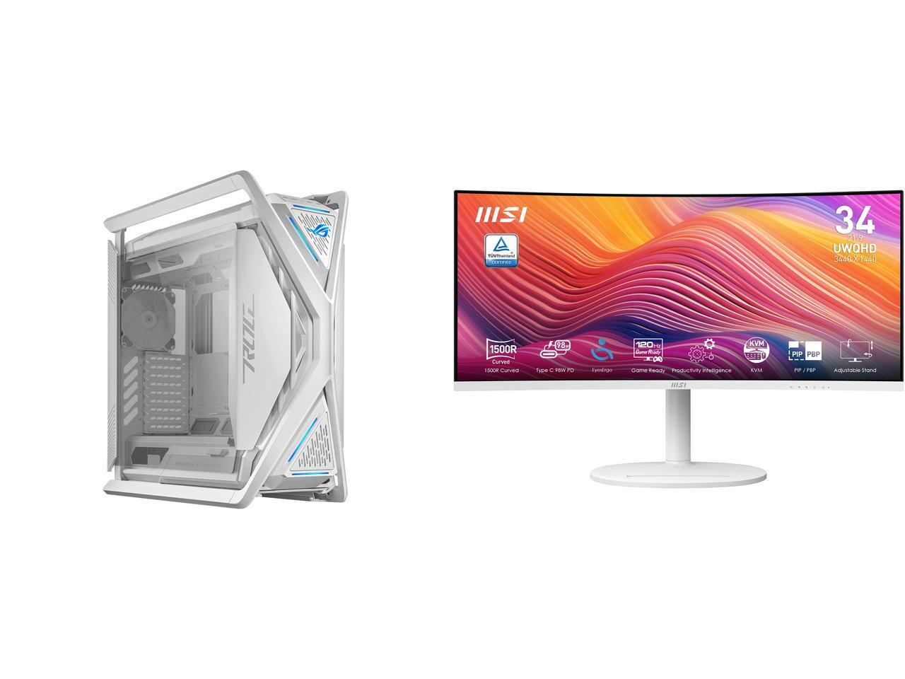 ASUS ROG Hyperion GR701 EATX full-tower computer case with Semi-open structure, tool-free side panels, supports up to 2 x 420mm radiators, built-in graphics card holder, 2x front panel Type-C MSI 34" UWQHD 2K 1440P 120Hz with Adaptive-Sync