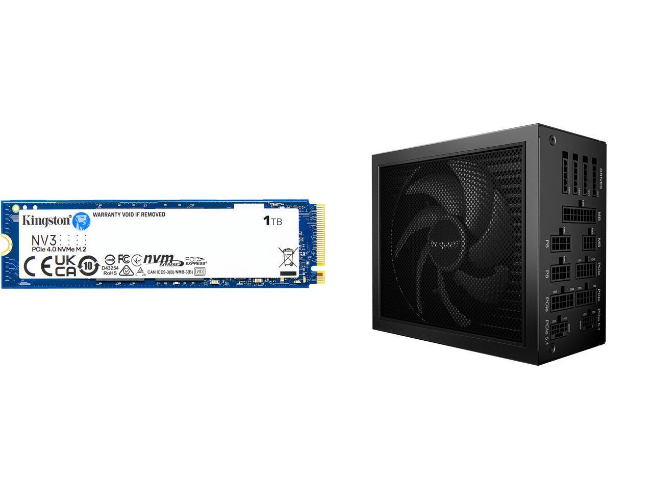 Kingston NV3 M.2 2280 1TB PCIe 4.0 x4 NVMe Internal Solid State Drive (SSD) SNV3S/1000G Up to 6000 MB/s be quiet! Dark Power 14 850W ATX 3.1 Power Supply | 80 Plus Titanium Efficiency | PCIe 5.1 | Modular | 10 Year Warranty | BP019US