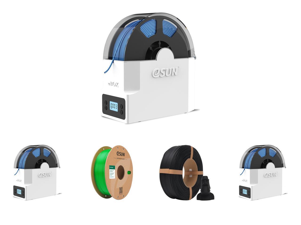 3 x eSUN eBOX Lite Upgraded 3D Printing Filament Dryer Box, Filament Storage Box, Spool Holder for Keeping 3D Printing Filament from Moist and Keeping Filaments Dehydrating, US Plug and 1 x eSUN PLA Basic Filament 1.75mm, 3D Printer Filament High Speed PLA for Fast Printing, 1KG Spool (2.2 LBS) 3D Printing Filament for High Speed 3D Printers, Green and 1 x eSUN Matte PLA Refilament 1.75mm, Matte 3D Printer Refill PLA Filament, 1KG Spoolless 3D Printing Filament for 3D Printers, Deep Black