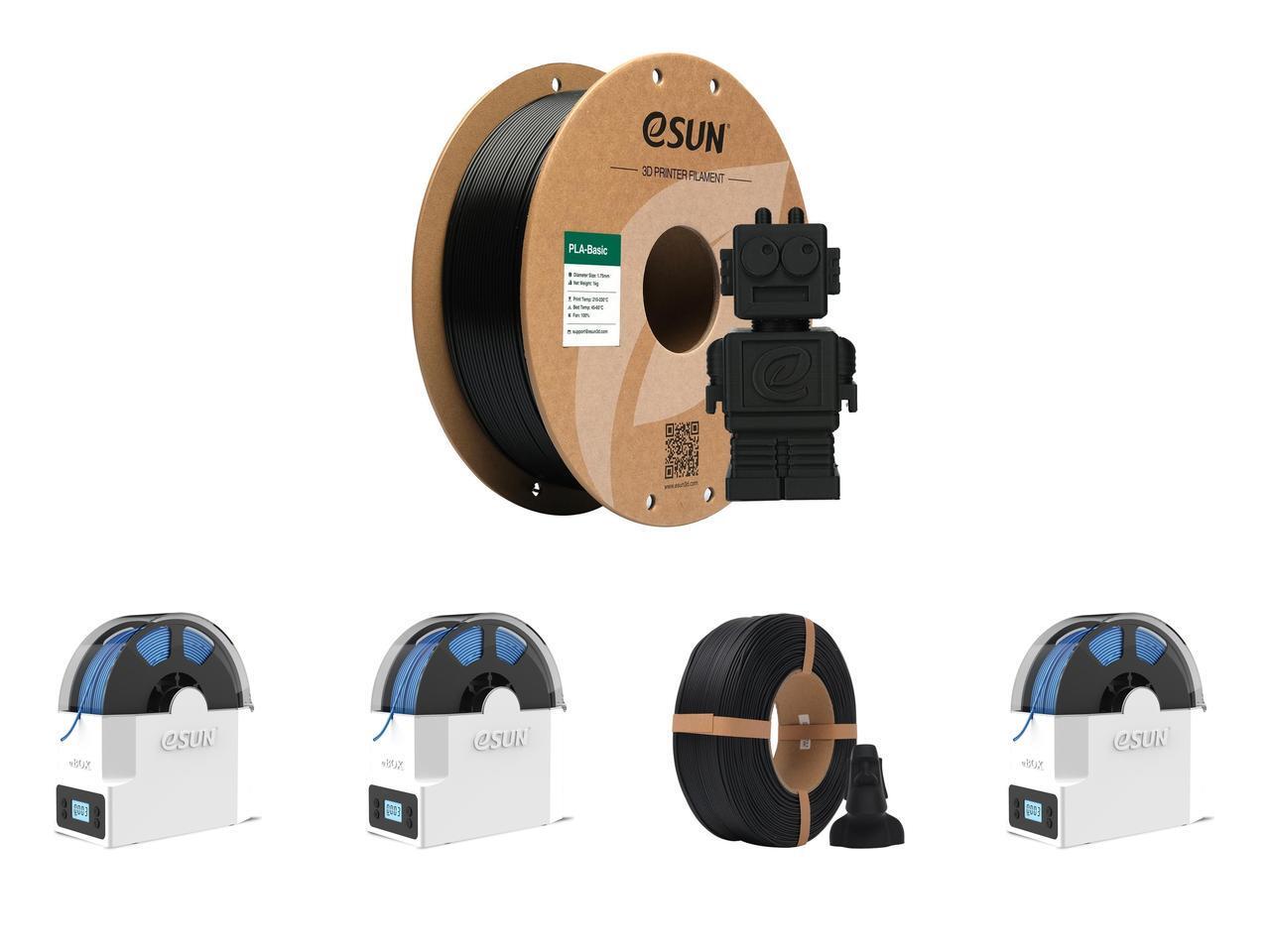 eSUN PLA Basic Filament 1.75mm, 3D Printer Filament High Speed PLA for Fast Printing, 1KG Spool (2.2 LBS) 3D Printing Filament for High Speed 3D Printers,Black and 3 x eSUN eBOX Lite Upgraded 3D Printing Filament Dryer Box, Filament Storage Box, Spool Holder for Keeping 3D Printing Filament from Moist and Keeping Filaments Dehydrating, US Plug and 1 x eSUN Matte PLA Refilament 1.75mm, Matte 3D Printer Refill PLA Filament, 1KG Spoolless 3D Printing Filament for 3D Printers, Deep Black