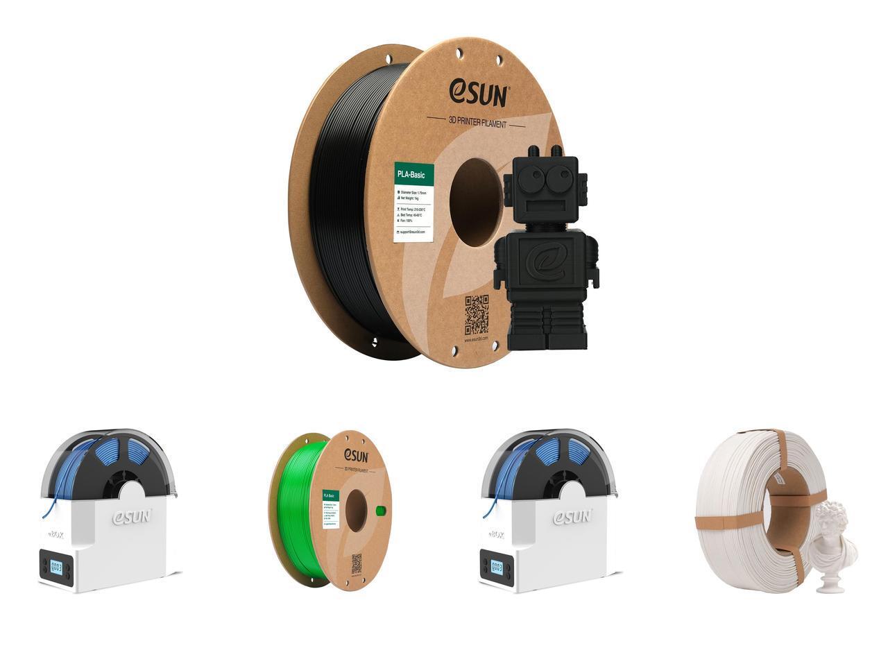 eSUN PLA Basic Filament 1.75mm, 3D Printer Filament High Speed PLA for Fast Printing, 1KG Spool (2.2 LBS) 3D Printing Filament for High Speed 3D Printers,Black and 2 x eSUN eBOX Lite Upgraded 3D Printing Filament Dryer Box, Filament Storage Box, Spool Holder for Keeping 3D Printing Filament from Moist and Keeping Filaments Dehydrating, US Plug and 1 x eSUN PLA Basic Filament 1.75mm, 3D Printer Filament High Speed PLA for Fast Printing, 1KG Spool (2.2 LBS) 3D Printing Filament for High Speed 3D Printers, Green and 1 x eSUN Matte PLA Refilament 1.75mm, Matte 3D Printer Refill PLA Filament, 1KG Spoolless 3D Printing Filament for 3D Printers, Milky White