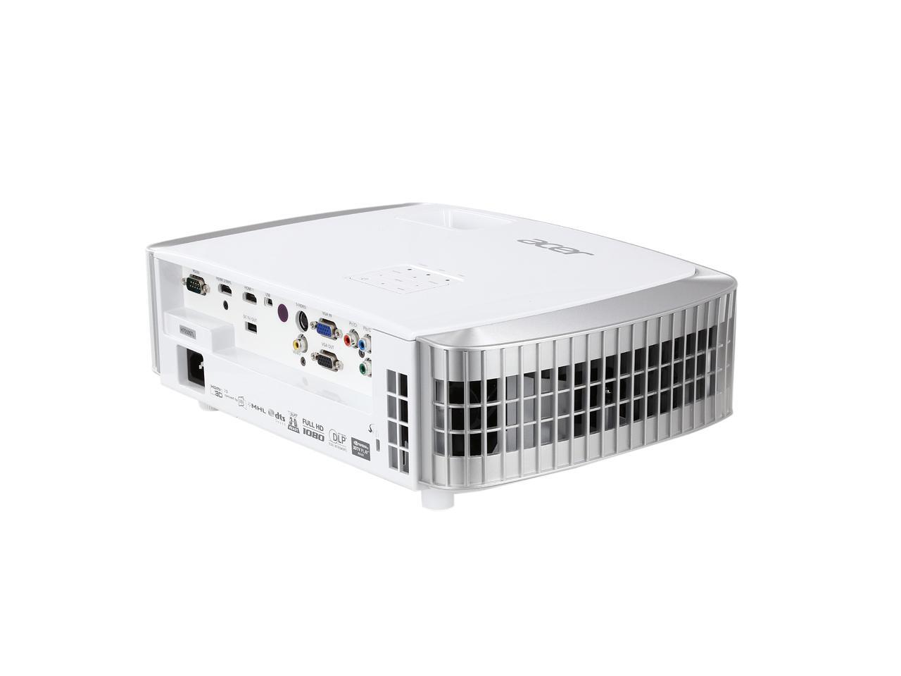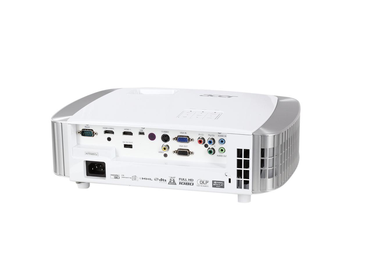 With 1080p resolution and 3000 ANSI lumens brightness, the Acer H7550STz short-throw DLP projector delivers crystal-clear images, even in confined spaces. With the combination of the built-in 20W speakers with DTS surround sound and up to 300 inches scale size, it lets you enjoy cinematic experience right at your home. In additional to HDMI ports, the projector also supports wireless connection and Bluetooth audio connection. The included 3D glasses allow for 3D content viewing out of the box. The projector can even upscales 2D to 3D to provide you a degree of the depth effect.