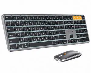 ProtoArc Backlit Bluetooth Keyboard and Mouse for Mac - Multi-Device Wireless Keyboard Mouse for Mac, Full Size Rechargeable for MacBook Pro/Air, iPhone, iPad - White Silver
