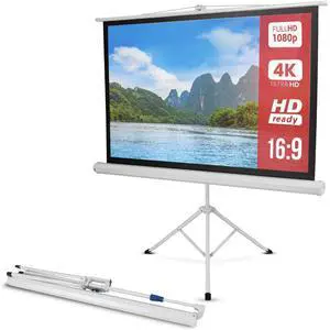Pyle 60 Inch Portable Projector Screen with Tripod Stand Fold Out Roll Up, HD Premium 16:9 Aspect Ratio, Matte Viewing Surface for Indoor and Outdoor Use, Perfect for Home, Office and Presentations