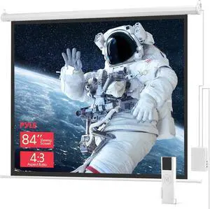 Pyle 84" Motorized Projector Screen Matte White 4:3 Format, Automatic Pull Down Projection Display with Wireless Remote, Wall and Ceiling Mount Options, Portable Home, Office, Classroom Cinema