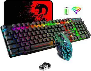 Wireless Gaming Keyboard and Mouse,Rechargeable Rainbow Backlit Keyboard Mouse with 3800mAh Battery,Mechanical Feel Gaming Keyboard,7 Color Gaming Mute Mouse,Gaming Mouse Pad for PC Gamers