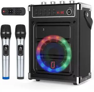 Portable Bluetooth Karaoke Speaker System with Dual Wireless Microphones.
