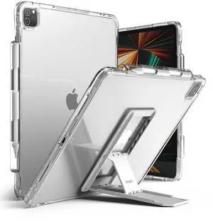 Ringke Fusion Plus with Outstanding [Case + Stand] Compatible with iPad Pro 12.9 Case (6th Generation 2022, 5th Generation 2021) Transparent Cover with Pencil Holder + Kickstand - Clear & Light Gray