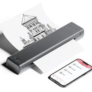 Wireless Thermal Printer, Inkless Portable Printer for Travel, Supports 8.5 x 11 Inch Thermal Paper, Compatible with Phone & Laptop (Elegant Black)