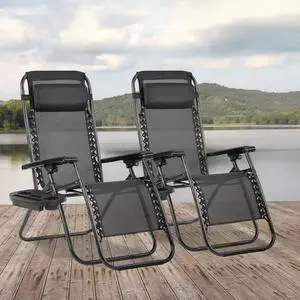 Her Majesty Zero Gravity Chair Seat Adjustable Patio Lounge Recliner Chair Set of 2 with Cup Holders Pillow for Patio Outdoor Yard Beach (Black)