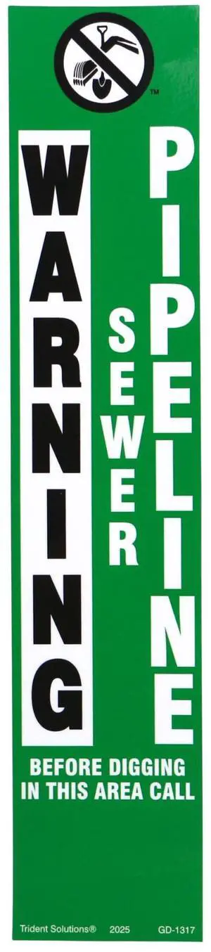 Rhino Marker Post Vinyl Warning Decal: decal-only / 2-7/8 in. x 14-16 in. (Green with WARNING SEWER PIPELINE printing)