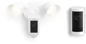 Ring Floodlight Cam Wired Plus with All-new Ring Indoor Cam, White