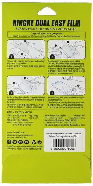 Ringke Dual Easy Film for Xiaomi Redmi Note 9 Pro/9 Pro Max/9 - (2 Pack)
