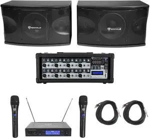 Pair Rockville KPS80 8" 3-Way 800w Karaoke/Pro Speakers+Amplifier+Wireless Mics