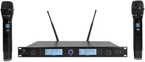 Rockville RWM23UA UHF Wireless Pro Rack Mount Dual Microphone System, 20 Channels, Long Range, Dual LCD Displays, Separate Outputs, for Karaoke and Live Performances