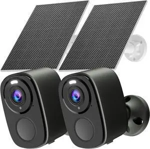 Rraycom 2Pack Wireless Battery-Powered Security Camera Outdoor with Solar Panel, 2K QHD, Color Night Vision, 130° Viewing Angle, AI Motion Detection, 2-Way Talk, Cloud/SD Storage