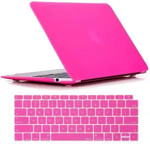 RUBAN Case for MacBook Air 13 inch Case 2022, 2021-2018 Release A2337 M1 A2179 A1932 - Protective Snap On Hard Shell Cover and Keyboard Cover for Version MacBook Air 13 with Touch Bar (Hot Pink)