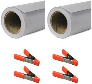 Savage 86"x36' Widetone Seamless Background Paper, Stone Gray, 2-Pack, Bundle with 4x 1-1/4x1" Steel Spring Orange Clamp