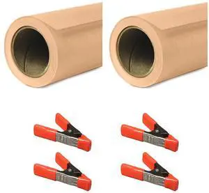 Savage 53"x36' Widetone Seamless Background Paper, Almond, 2-Pack, Bundle with 4x 1-1/4x1" Steel Spring Orange Clamp